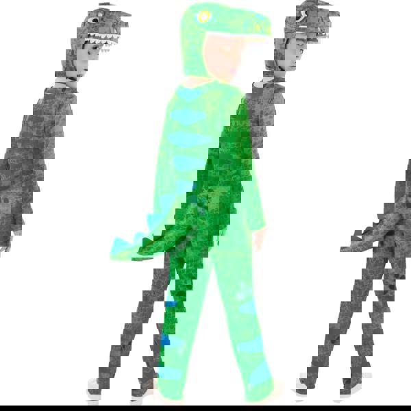 Bristol Novelty Friendly Dinosaur Costume Set is a children’s costume in green, made from 100% polyester. The outfit uses felt, jersey and soft-touch fabrics, with a printed dinosaur design, 3D spikes and a character head detail. A hook and loop fastening keeps the costume secure, and the long-sleeved jumpsuit is finished with a detachable 3D tail for a complete look.
