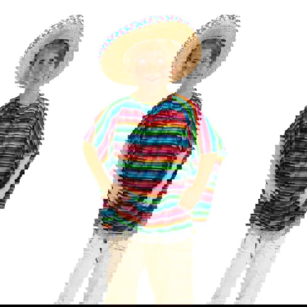 Bristol Novelty Children’s/Kids Poncho is a multicoloured striped poncho finished with fringing. It comes in one size fits most for easy wear across a range of children’s sizes. Hat and trousers are not included.