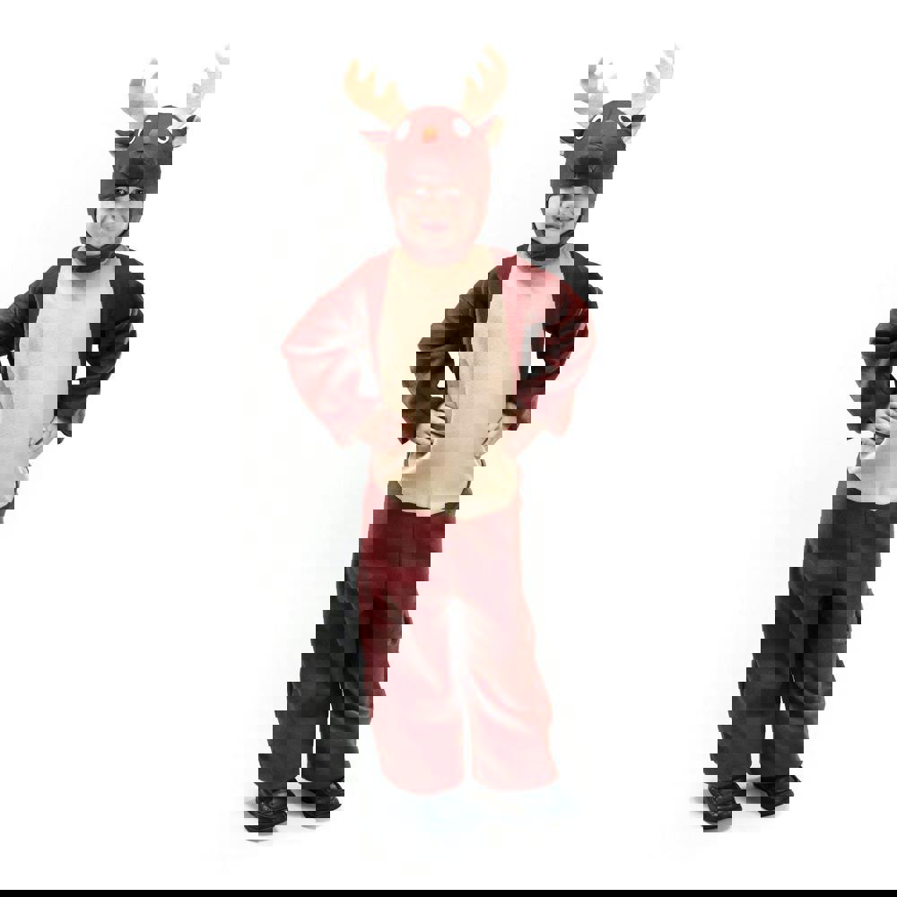 Bristol Novelty Reindeer Costume is a children’s costume set in brown, with a reindeer jumpsuit and a matching headpiece. The headpiece has a red nose detail and a touch fastening chin strap for a secure fit. Sizing is provided by height to help with selection.