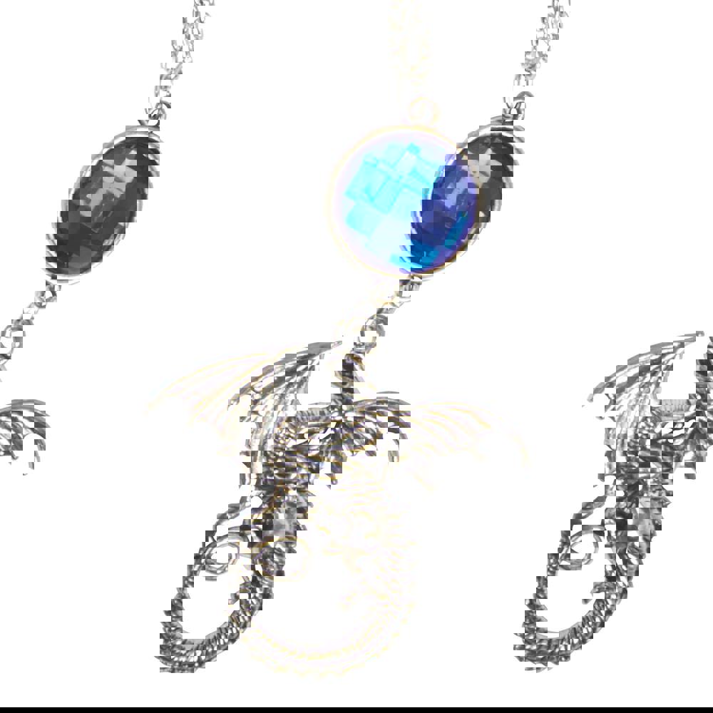 Bring a playful finishing touch to your look with the Bristol Novelty Dragon Necklace, a chain necklace designed with a striking dragon detail. A blue faux jewel sits at the bottom, adding a pop of colour that stands out against the silver-tone finish.