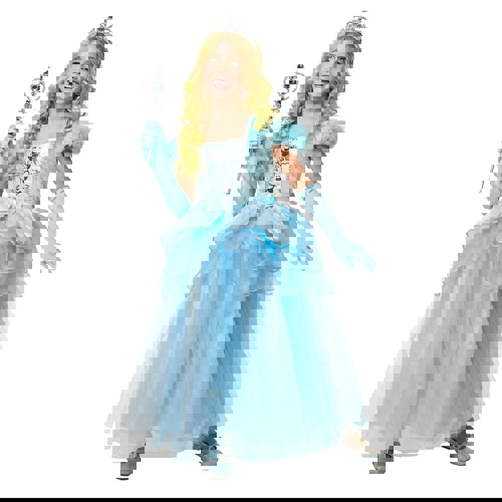 Bring a touch of fairytale style to dress-up days with the Bristol Novelty Girls Princess Costume in blue. Designed for imaginative play, this costume set centres around a dress with a layered tulle finish and short sleeves with cut-out detailing. Faux fur shoulders add an extra decorative touch, making it a standout choice for parties, role play and special occasions.