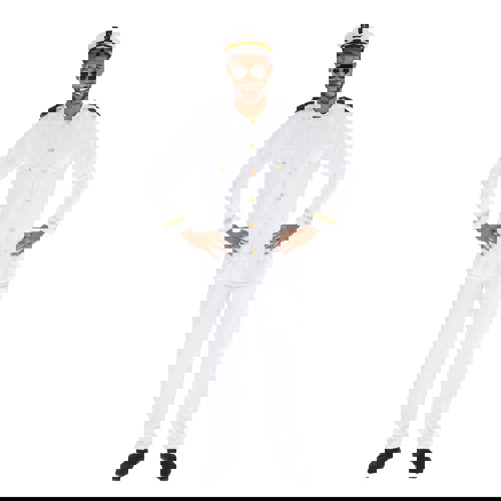 This men’s Navy Officer Costume & Hat set from Bristol Novelty is designed as a traditional naval-inspired outfit for dress-up occasions. The costume features a classic jacket style with button detailing, cuff stripes and shoulder decoration, creating a smart, uniform-style look.