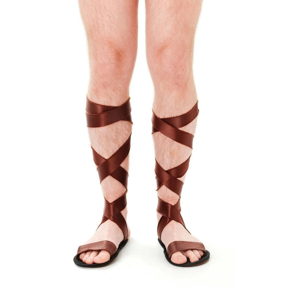 Designed for costume styling, the Men’s Roman Sandals from Bristol Novelty bring a classic Roman-inspired look to fancy dress outfits. Finished in brown with a faux leather effect, they’re detailed with leg wraps to complete the traditional silhouette, making them a strong choice for themed parties, stage wear and historical-inspired events.