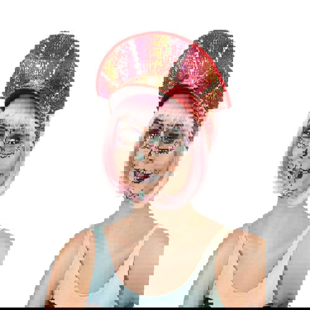 A small peak adds definition, while the pink finish is decorated with sequins and faux gems for extra sparkle under lights. Suitable for unisex adults, it’s a standout choice for festivals, themed parties and costume events when you want an accessory that catches the eye and completes an outfit with minimal effort.