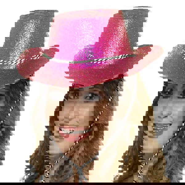 The Bristol Novelty Unisex Adults Glitter Cowboy Hat in pink is a one-size accessory designed to add a bold finishing touch to your outfit. Featuring a glitter design, it brings extra shine to fancy dress looks and themed events, while keeping styling simple and easy to coordinate.