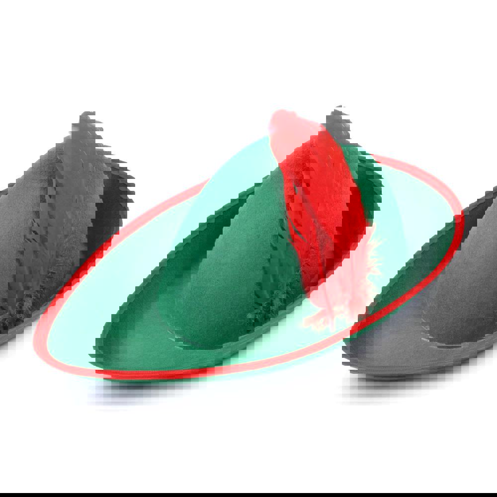Finished with a feather detail, this hat adds a playful flourish that works well for Robin Hood-inspired costumes and other medieval or folklore-themed ensembles. The green and red colourway gives it a bold, traditional feel, making it a standout accessory whether you’re dressing for a group theme or putting together a quick costume on the day.