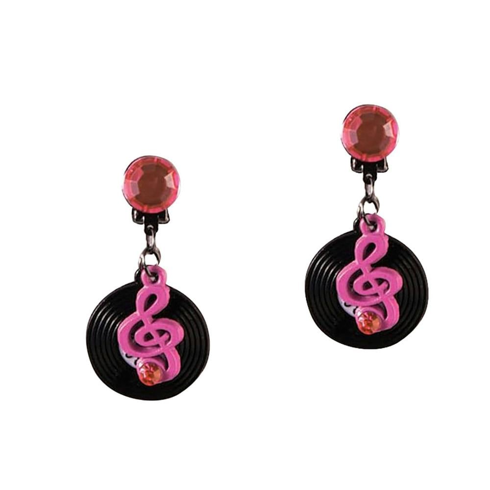 Bring a playful retro accent to your look with the Rock N Roll Record Earrings from Bristol Novelty. Designed in a 50s-inspired record shape, this clip-on pair offers an easy way to add character to party outfits, themed events and fancy dress without the need for pierced ears. Finished in black with pink detailing, they make a bold, graphic statement that works especially well with rock ’n’ roll styling.