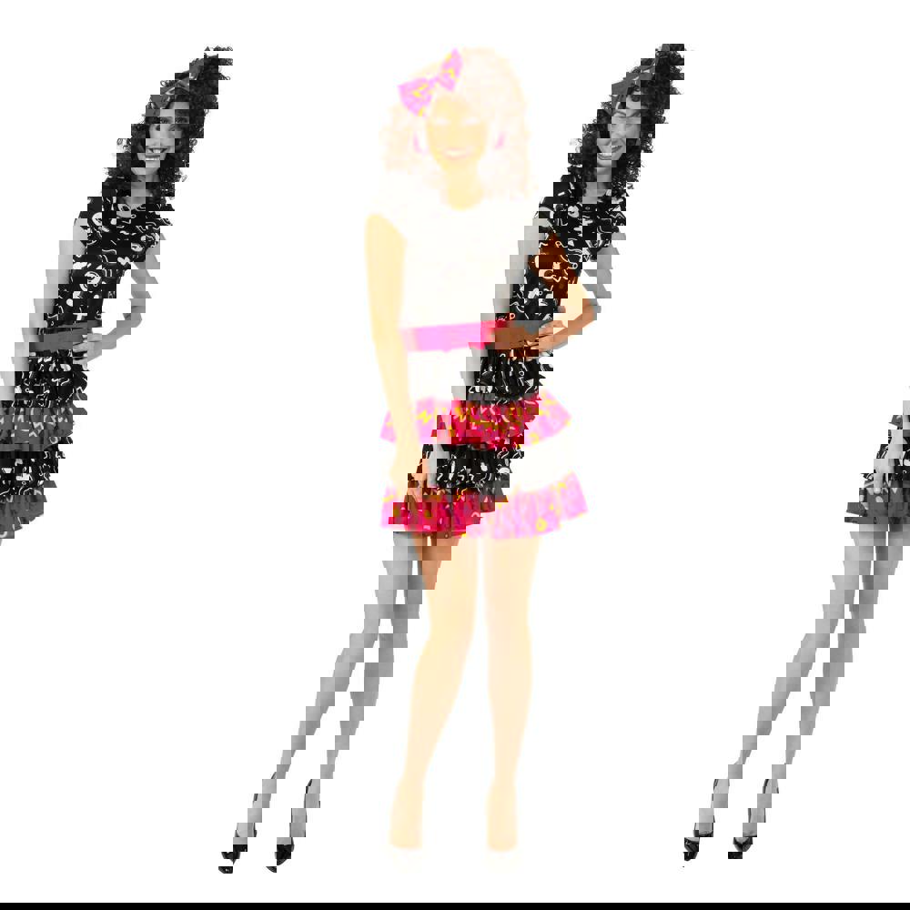 This costume dress comes in a bold mix of black, pink, white and yellow for a standout finish. To help pull the look together, it includes a matching headpiece and belt, so you can style the outfit as intended without needing to source extra accessories.