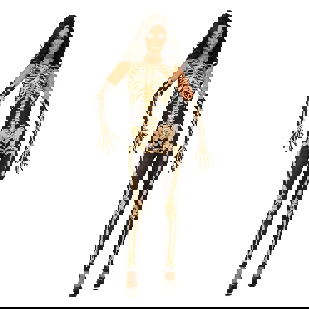 The Bristol Novelty Women’s Lady Bones Costume is a coordinated outfit featuring skeleton detailing in a black and gold colourway. Designed as a complete costume set, it’s an easy option when you want a ready-to-wear look without sourcing separate pieces.