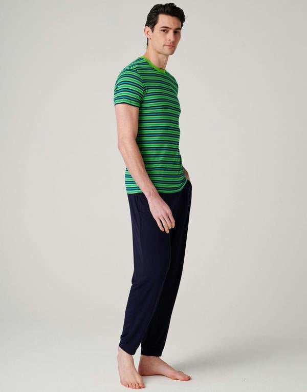 A bold addition to nightwear, the British Boxers Men’s Bamboo Pyjama Set in Electric Lime brings a fresh look to evenings at home. The set is made from bamboo viscose with added elastane, with a soft, breathable handle and moisture-wicking properties. A short-sleeve T-shirt pairs with matching pyjama trousers for a relaxed combination suited to sleeping or unwinding.