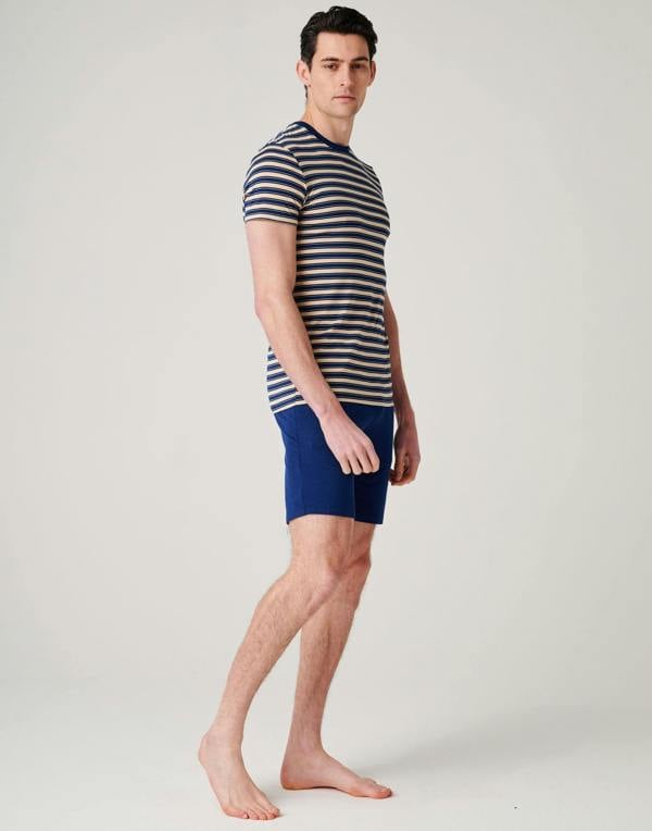 For warm nights and easy downtime, the British Boxers Men’s Bamboo Short Pyjama Set in Sandstone keeps things simple and comfortable. Made from a bamboo viscose blend with added elastane, it has a soft, breathable handle and a little stretch for ease. The set includes a short-sleeve T-shirt with a relaxed fit, paired with matching shorts finished in a stripe design.