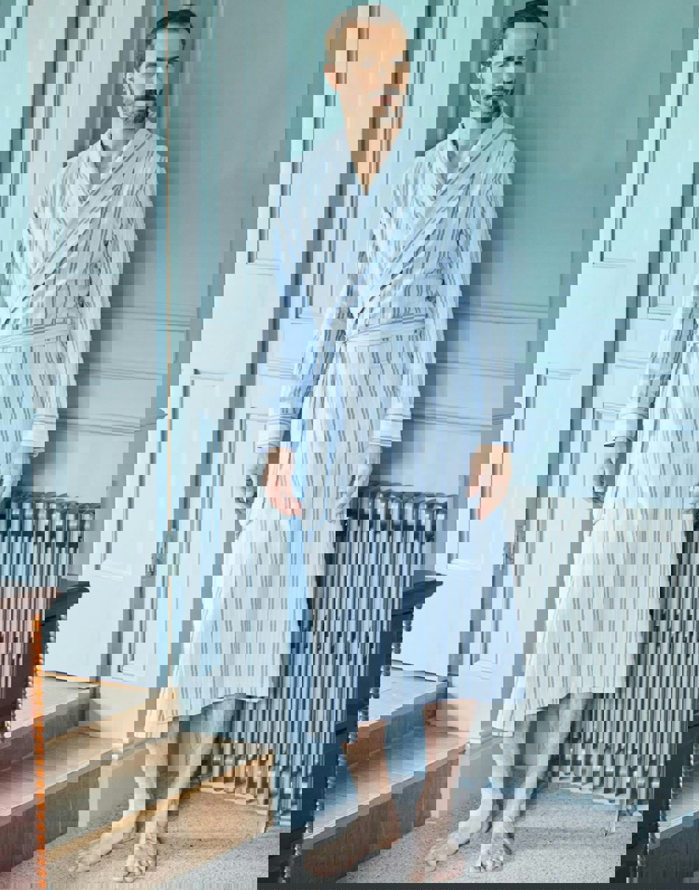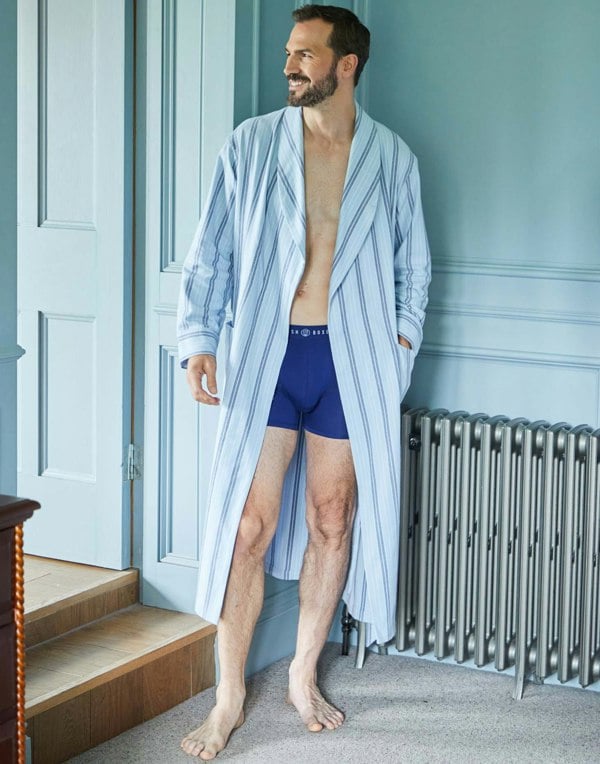From leisurely mornings to cosy nights in, this exquisite dressing gown has you covered. It's crafted from the softest brushed cotton, which is woven to our exact specifications and the fibres brushed repeatedly for an utterly luxurious feel against the skin. Made to our elegant design, the robe also features two pockets at the front, inside ties, a shawl collar and a belt tie. A must-own for the discerning gent.