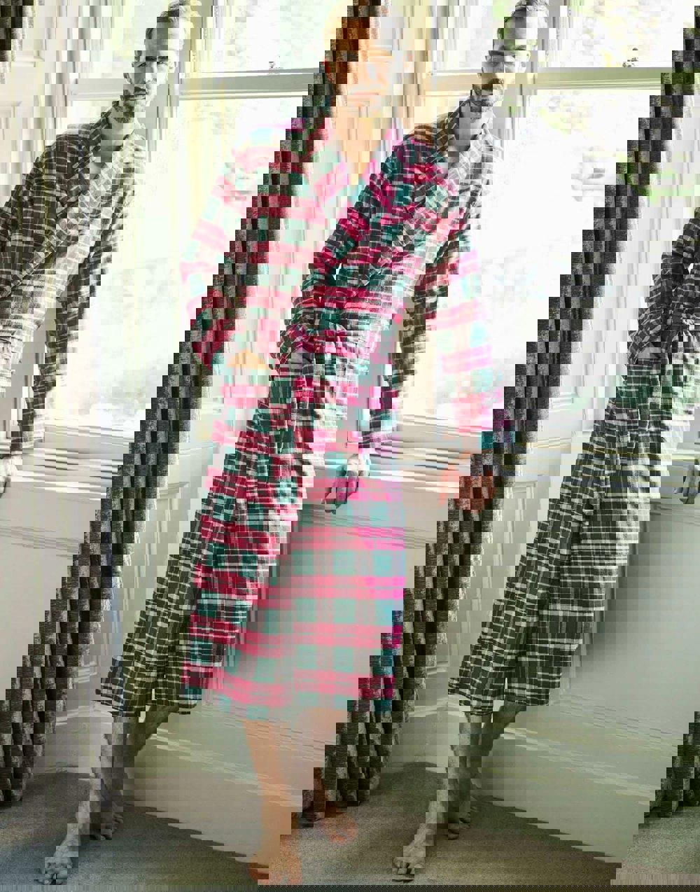 Also available in matching pyjama set, nightshirt, pyjama trousers and sleep short separates. See the full Gaia Tartan collection.