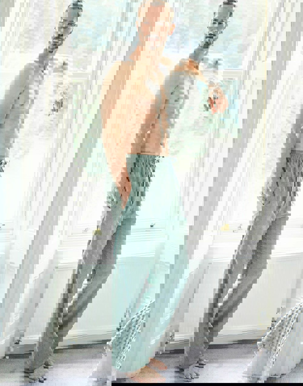 Eat, sleep, relax, repeat. These premium men’s pyjama trousers are designed for comfort day and night. Made from soft brushed cotton woven to our high standards, the fibres are brushed repeatedly for a luxuriously cosy feel. The timeless design includes an elasticated waist with a self-fabric tie, two side pockets, two back patch pockets for your essentials, and an open fly. Pair it with our navy organic cotton pyjama top and matching robe to complete your loungewear look.