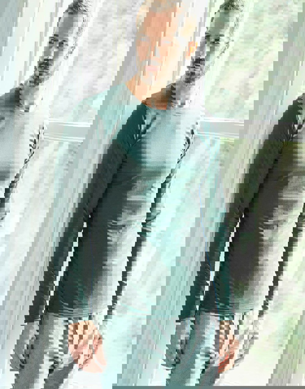 This Men's Organic Cotton Jersey Long Sleeve T-Shirt is your go-to essential for everyday wear and laid-back lounging. Crafted from 100% cotton, it offers a soft, breathable feel that’s kind to your skin. The lightweight jersey knit delivers the perfect balance of stretch and structure — ideal for layering or wearing on its own.