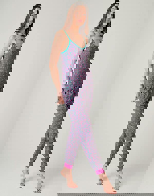 Bold print meets a relaxed silhouette in the British Boxers Women’s Bamboo Camisole Pyjama Set – Spectra Leopard. This two-piece set pairs a long camisole top with full-length trousers, finished in a green and pink Spectra Leopard pattern for a distinctive look that suits evenings at home.