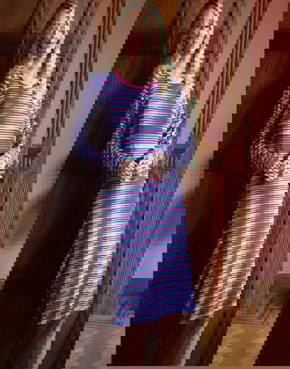 Our bamboo long sleeve nightdress in the vibrant Forest Berry Stripe design combines comfort, elegance, and a touch of nature-inspired charm. Crafted from ultra-soft, breathable bamboo fabric, it’s gentle on the skin, ensuring a cool and restful night’s sleep. The long sleeve design offers extra warmth and coverage, while the slightly A-line fit drapes beautifully over the body for a flattering silhouette. With its luxurious, silk-like feel and striking Forest Berry Stripe pattern, this nightdress is perfect for cosy nights at home, offering both style and ultimate comfort. Embrace the softness of bamboo and enjoy a peaceful rest with this charming sleepwear essential.