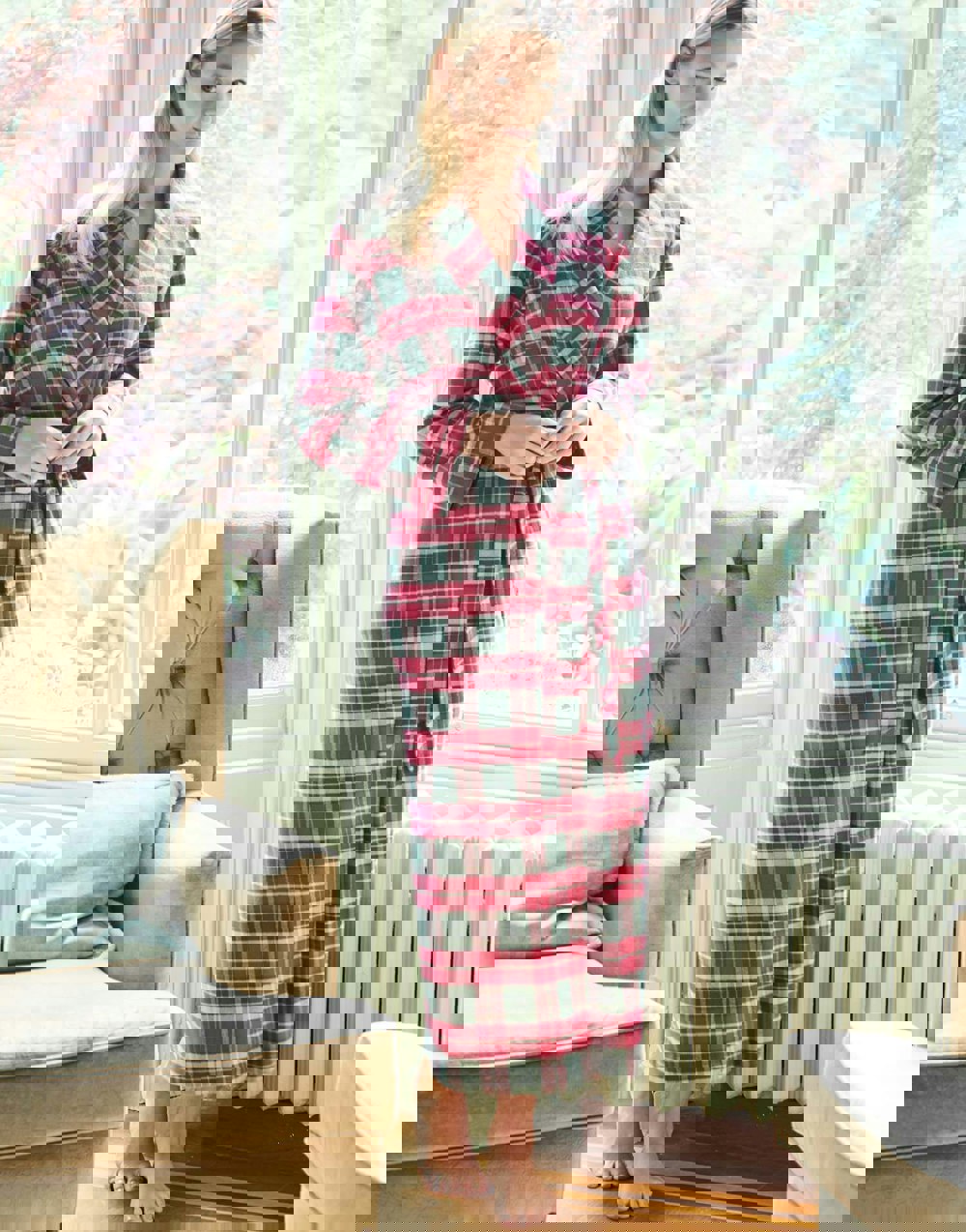 Also available in matching nightshirt, pyjama set, pyjama trousers and sleep short separates. See the full Gaia Tartan collection.