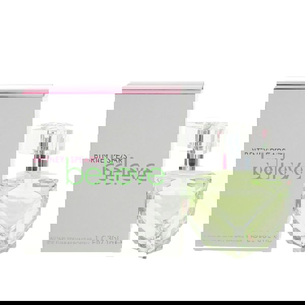Britney Spear launched Believe Eau de Parfum in 2007 as a floral fruity fragrance for women. Believe was promoted with the slogan, ″The greatest freedom is to be believe in yourself. Sensual and warm, delicate and feminine, Britney Spears Believe is a sparkling blend of exotic fruits, soft florals and seductive amber. The fragrance is presented in a modern, peridotite coloured bottle with a striking silhouette.