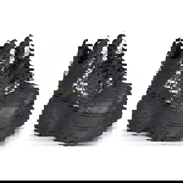 The 1339-14 PUNK platform trainers combine bold style with ethical craftsmanship. Crafted from premium vegan nappa synthetic leather, these low-top sneakers offer the sleek appearance of leather without compromise. Featuring a cushioned footbed and breathable lining, they provide lasting comfort and support for all-day wear. Durable and cruelty-free, these black platform sneakers with studded detailing bring a distinctive, edgy flair to your wardrobe.