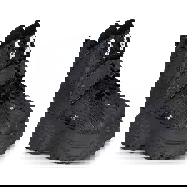 These women’s black calf leather sneakers combine nostalgic ’90s design with modern comfort and durability. The high-top silhouette and chunky platform sole create a distinctive, fashion-forward look while providing stability and a confident lift. Designed for long-lasting wear, the boots feature a padded collar, cushioned insole, and secure lace-up closure with a convenient Velcro strap for a customisable fit. The smooth calf leather exterior ensures both a polished appearance and robust durability, making these boots suitable for everyday wear, urban exploration, or special outings.