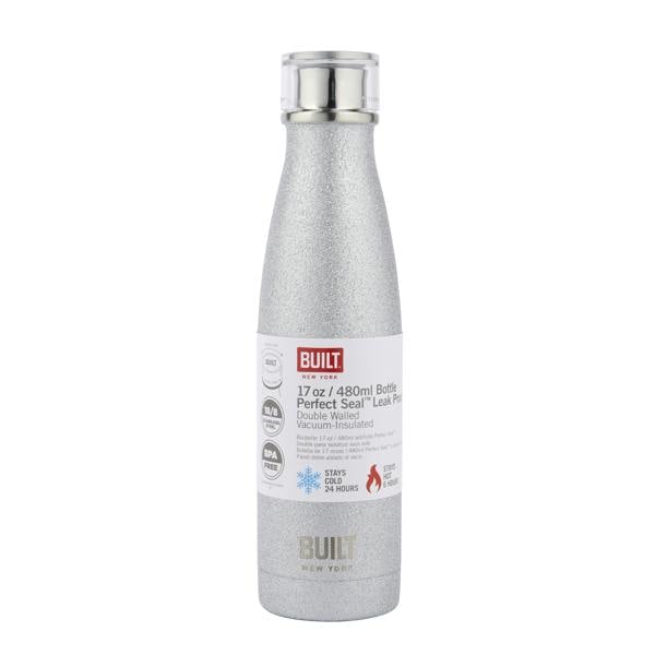 Function meets style with this attractive insulated water bottle. Produced from top-quality, highly durable materials, these versatile flasks are more than up to the challenge of keeping pace with the busy commuter, frequent gym-goer, or the dedicated hiker. Double-walled vacuum insulation preserves drinks, without affecting the outer temperature. Fill this drinks bottle with a generous cupful of hot tea, coffee or soup, and it will stay warm for up to 6 hours without burning your fingers. Iced tea, water, and other cold drinks remain refreshingly cool in this handy metal bottle, too. Looking as good as it performs, it sports a glittery silver exterior, while its tall sleek shape will slip easily into any bag or car holder.