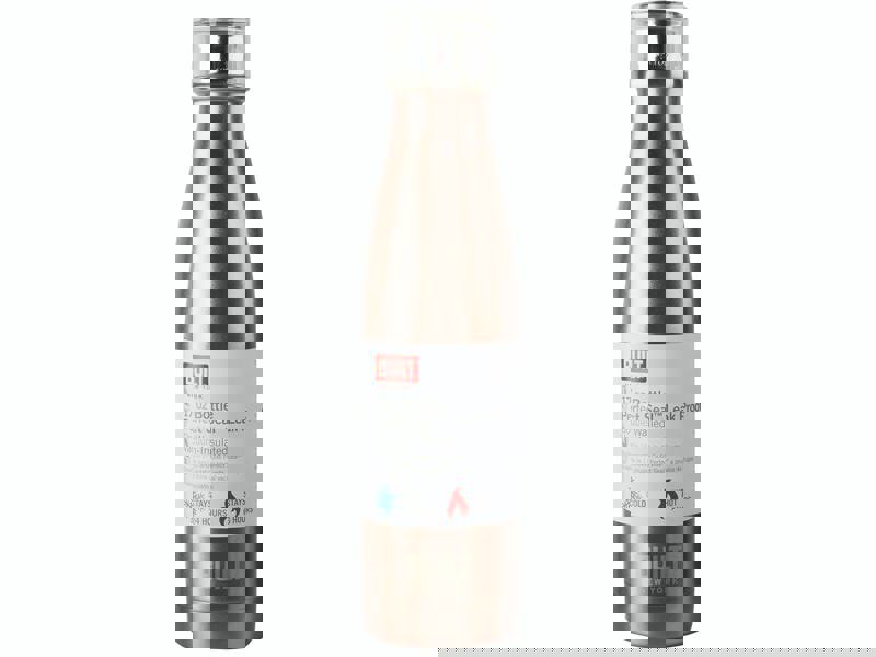 Function meets style with this attractive insulated water bottle. Produced from top-quality, highly durable materials, these versatile flasks are more than up to the challenge of keeping pace with the busy commuter, frequent gym-goer, or the dedicated hiker. Double-walled vacuum insulation preserves drinks, without affecting the outer temperature. Fill this drinks bottle with a generous cupful of hot tea, coffee or soup, and it will stay warm for up to 6 hours without burning your fingers. Iced tea, water, and other cold drinks remain refreshingly cool in this handy metal bottle, too. Looking as good as it performs, it sports a vanilla exterior, while its tall sleek shape will slip easily into any bag or car holder.