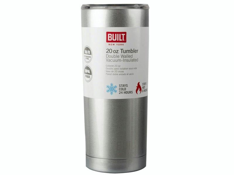 The double wall also means the exterior will stay a comfortable temperature to hold, while a sturdy Tritan lid easily slides open and closed for one-handed drinking. This striking travel mug is a stunning metallic silver, making it a stylish piece as well as functional. Perfect for taking smoothies, herbal teas or any hot or cold refreshment, this travel mug is ideal for taking with you for a nourishing boost in the car, on the commute or anywhere on the go. The travel mug is suitable for a standard size cup holder and is BPA free for peace of mind. Capacity: 590ml/20 fl oz.