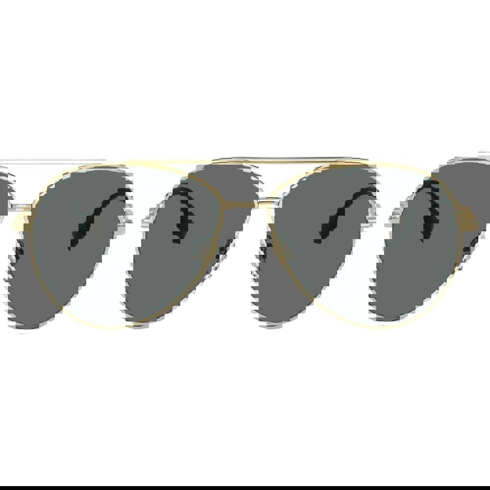 Featuring sleek dark grey lenses framed by elegant gold accents, they offer both superior sun protection and a timeless look.