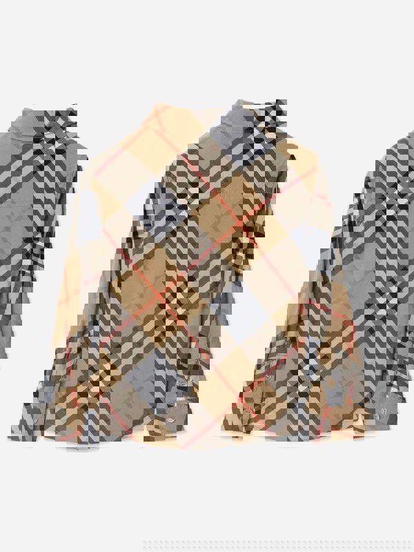 Burberry Kids Owen shirt for baby boys in beige with the Vintage Check pattern. Made from 100% cotton, this long-sleeved style has a classic collar and a front button fastening. A straight hem completes the clean, traditional finish.
