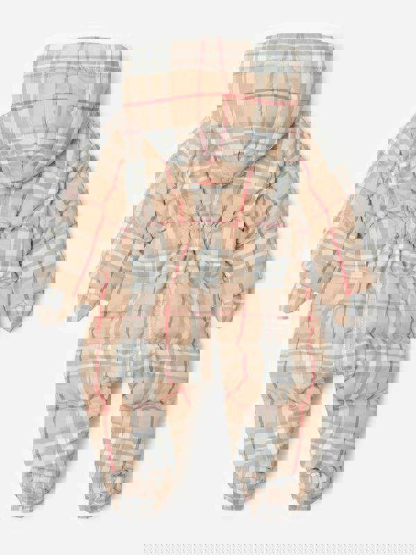 This Burberry Kids snowsuit comes in pale stone with the brand’s Vintage Check. Made from 100% polyester, it has a tiered design and a hood for a practical finish. A zip fastening runs through the front for easy dressing.