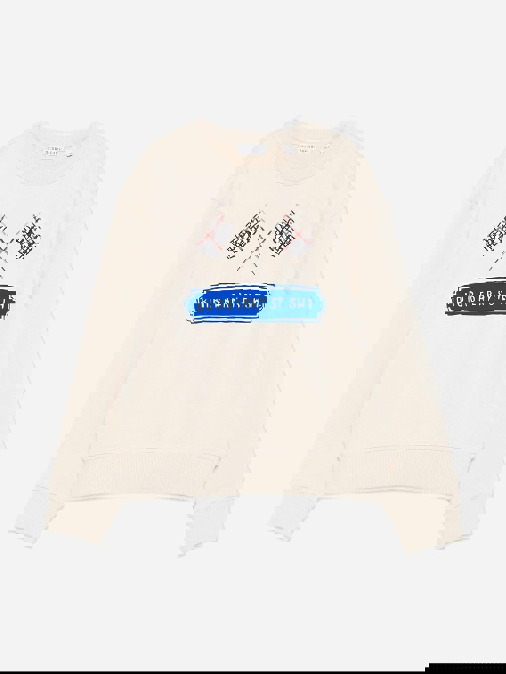 This Burberry boys sweatshirt comes in ivory cotton with a graphic print on the front. The design includes crossed flags and Burberry ST SW1 text, bringing a bold branded finish to a classic casual shape.