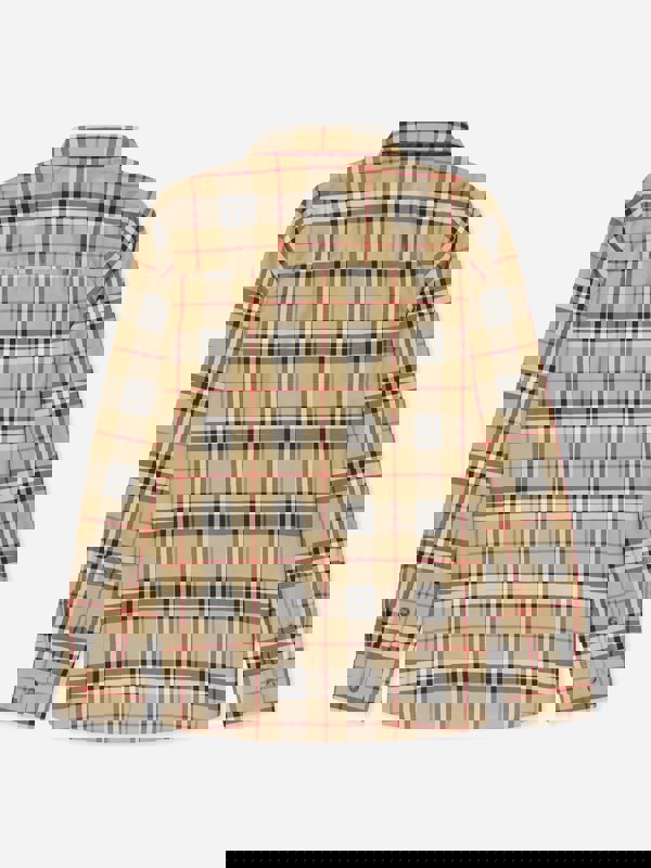 This Burberry boys Owen long sleeve shirt comes in beige with the brand’s classic check design. The signature check print gives the shirt a distinctive Burberry look, finished in a long sleeve silhouette.