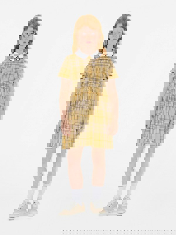 Made from 100% cotton, it offers a classic look with a distinctive check finish in yellow.