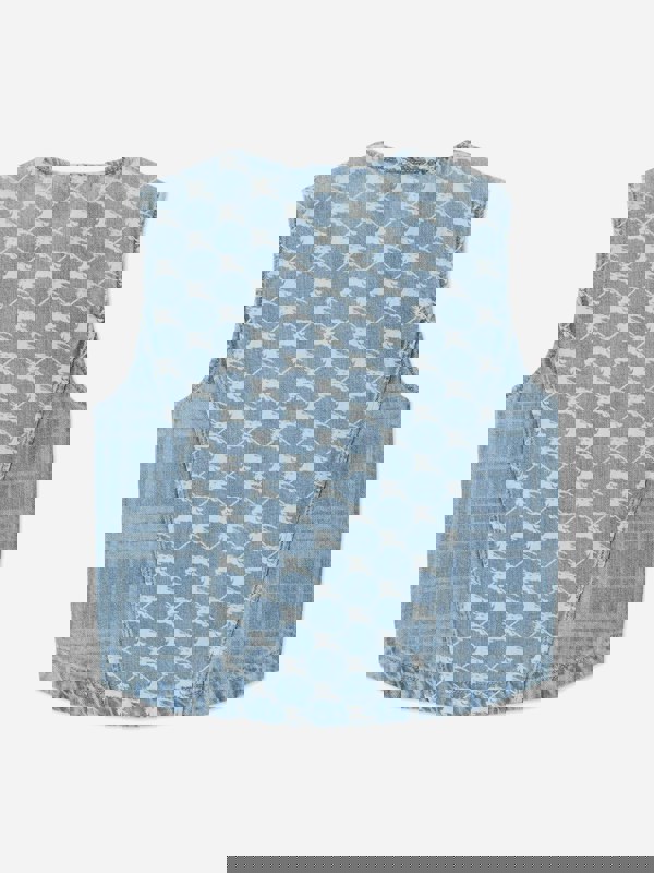 This pale blue Wendy short jacket from Burberry Kids is made in 100% cotton. It has a V-neck collar and a zip-up front, with oversized patch pockets for a clean, practical finish. A faded check pattern runs through the design, created using a discharge technique. The front panel and reverse are detailed with a solid EKD grid.