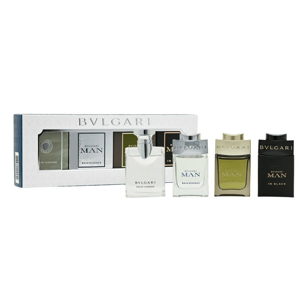 Discover the perfect gift for him with the Bvlgari Men’s Miniature Gift Set. This curated collection includes four iconic 5ml fragrances: Pour Homme EDT, Man Rain Essence EDP, Man Wood Essence EDP, and Man In Black EDP. Perfect for travel or trying out multiple scents, each fragrance captures a unique side of masculine elegance - from fresh and vibrant to bold and intense. Ideal for gifting or personal indulgence, this set offers luxury and variety in one stylish package.