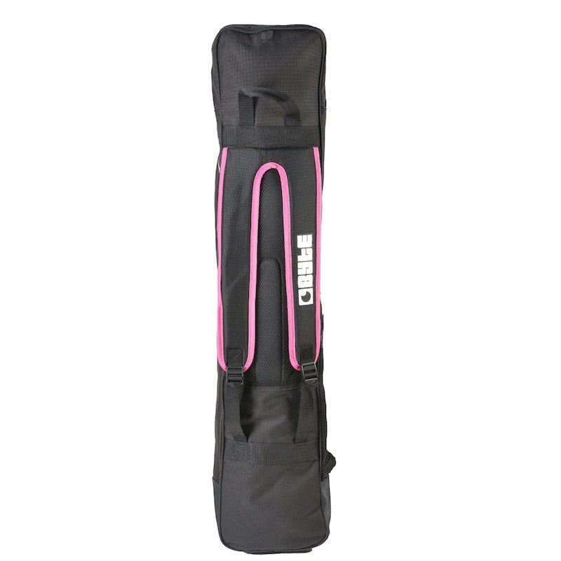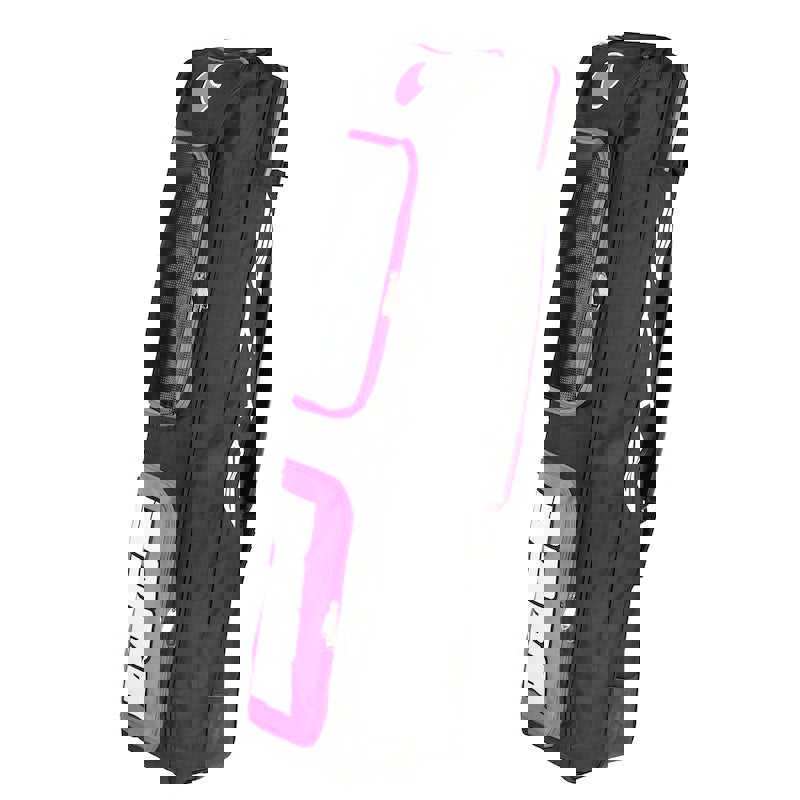 Byte's SX stickbag is the ideal bag for hockey players who have a lot fo kit to carry. Features include a double shoulder strap, padded breathable mesh on the shoulder straps and back for added comfort, large mesh side pocket for either shinguards or water bottle, two large front pockets and small top pocket. The stick capacity is four sticks. The material is 600D polyester.
