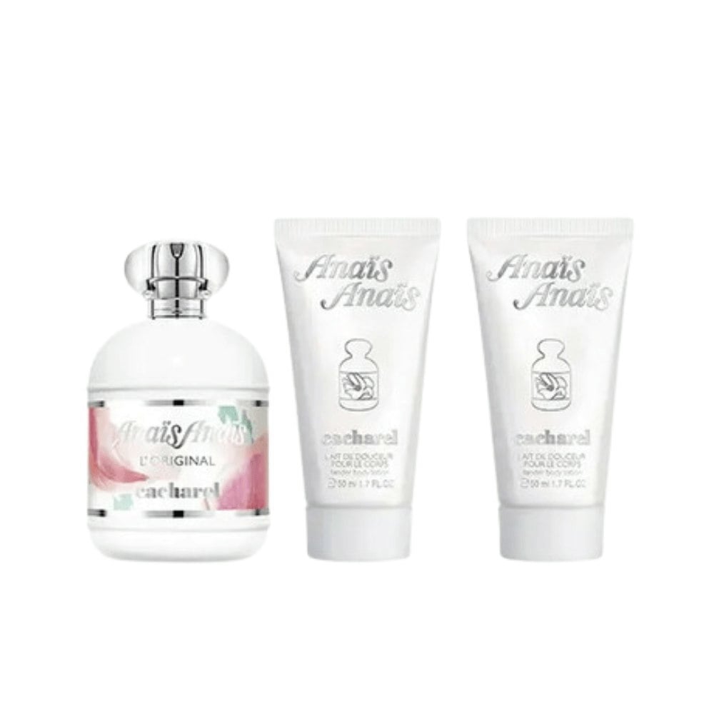 Embrace timeless femininity with the Cacharel Anaïs Anaïs Women’s Gift Set (100ml EDT + 50ml Body Lotion x2). This romantic fragrance opens with delicate white florals, including lily and jasmine, blended with soft rose and warm woody notes. The matching body lotions enhance and prolong the scent, leaving skin silky and beautifully scented. Perfectly packaged, this elegant set makes a charming gift for lovers of classic, floral sophistication.