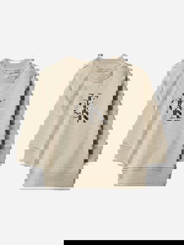 This Calvin Klein baby tracksuit gift set comes in beige and carries the brand’s CK monogram for a signature look. The set is presented as a coordinated option for a young wardrobe, with a neutral colour that pairs easily with other shades.