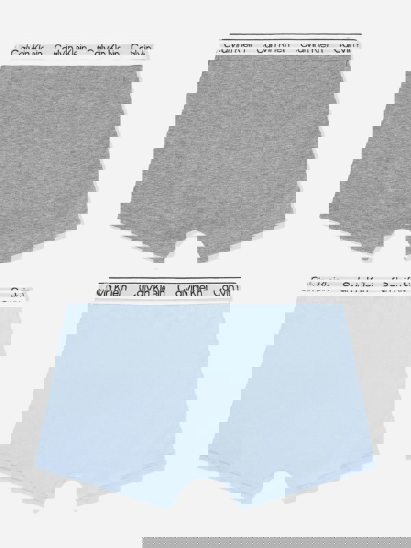 This Calvin Klein boys 2 pack boxer shorts set arrives in a multicolour palette for SS2025. The set includes two pairs and is finished with subtle Calvin Klein branding.
