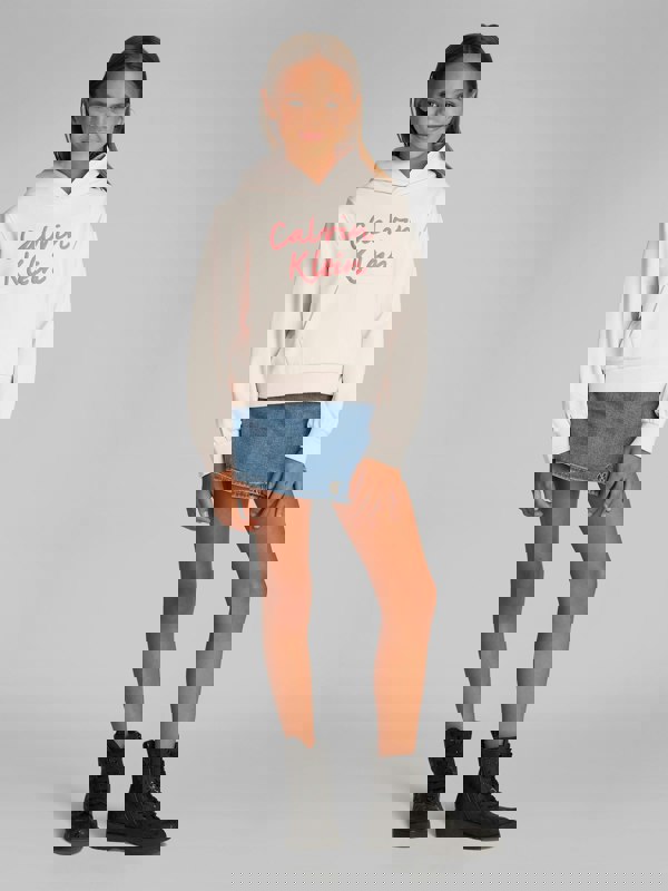 This girls hoodie by Calvin Klein comes in a vivid pink colourway with the brand’s script logo on the front. A simple, recognisable piece for everyday wear, it brings iconic Calvin Klein branding into a clean, casual look.