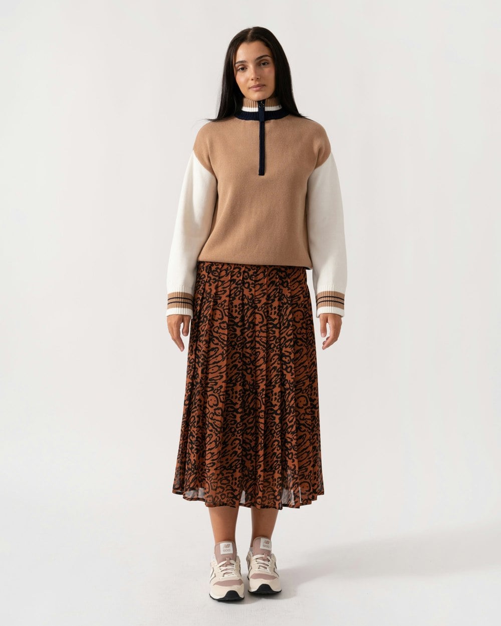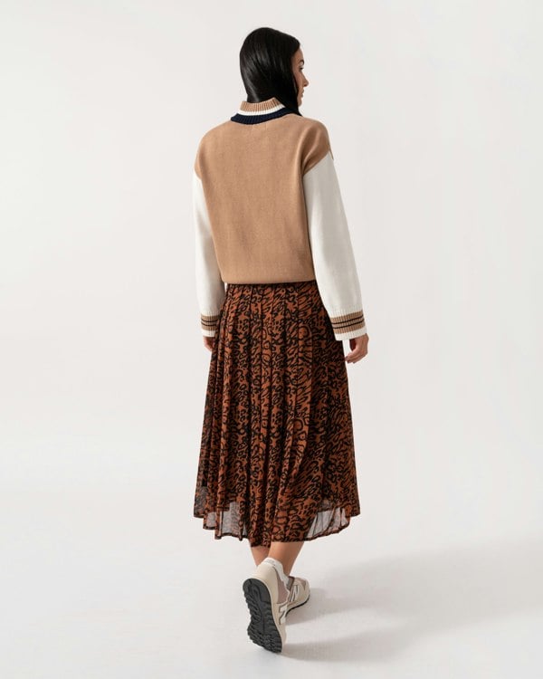 Bring pattern into your wardrobe with the Calvin Klein Leopard Georgette Pleated Women’s Skirt. Shown in a leopard print in brown, this pleated skirt offers a distinctive look that suits a range of everyday and occasion outfits. The style is identified by model number K20K201358.