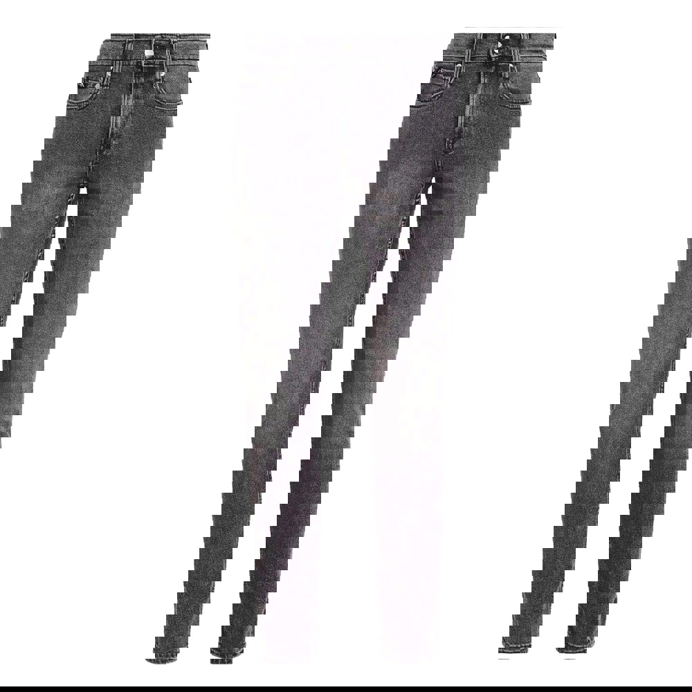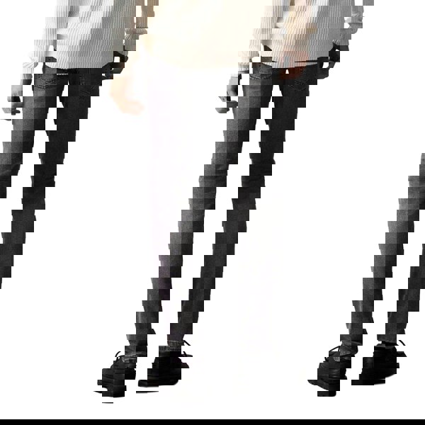 Practical details include a classic five-pocket layout with two side pockets, two back pockets and a coin pocket. A button fastening and zip fly keep the front secure, while belt loops and a leather badge complete the design.