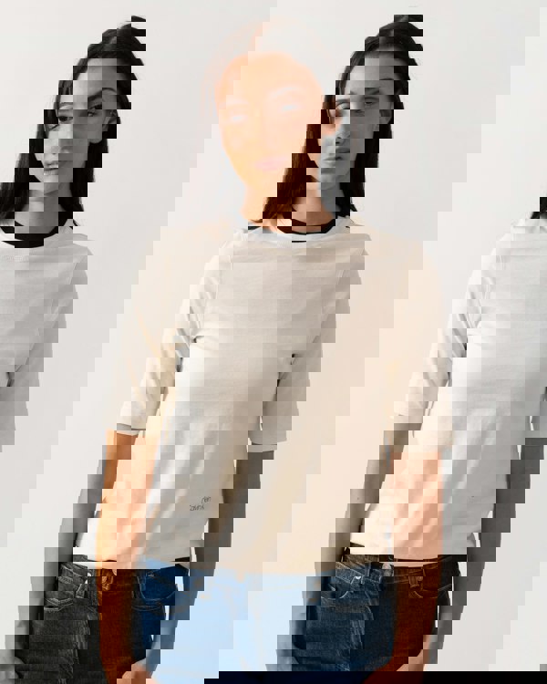 Short sleeved crew neck t-shirt.