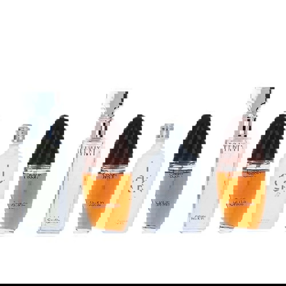 Calvin Klein Women's Miniatures Gift Set comes with 4 x 15ml Eau de Parfum or Eau de Toilette fragrances - Eternity EDP, CK One EDT and 2 Obsession EDP perfumes.
