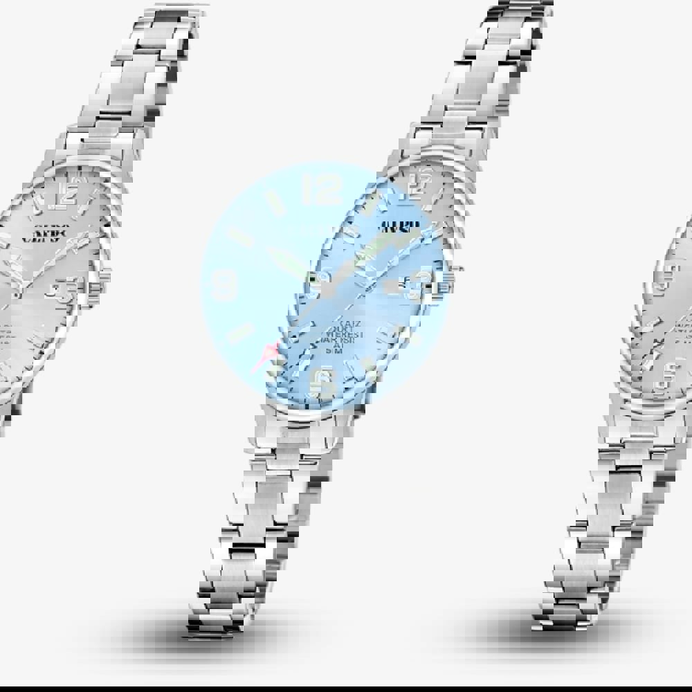 • Presented on a silver stainless steel bracelet with traditional buckle.