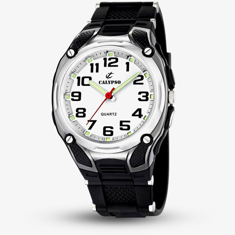 The Calypso Men's Street Style Watch blends urban fashion with everyday function. Featuring a sleek black plastic case and strap, this bold timepiece is designed for modern streetwear appeal. The crisp white dial is accented with clear Arabic numeral hour markers and luminous hands and markers, making it easy to read day or night. Stylish and practical, it’s the perfect accessory for a laid-back yet confident look.