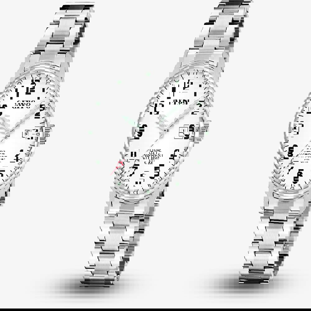 • Presented on a silver stainless steel bracelet with traditional buckle.