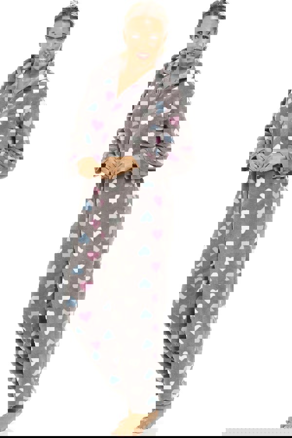 • Keep Cosy In This Stylish Super Soft Fleece Multi Coloured Heart Print Grey Onesie