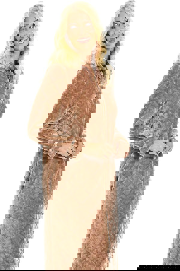 • Design: This housecoat features a classic diamond emboss, turn down collar & a thin satin band on the collar and cuffs to keep you feeling classy whilst being warm. Available in Grey, Brown, Purple & Burgundy.